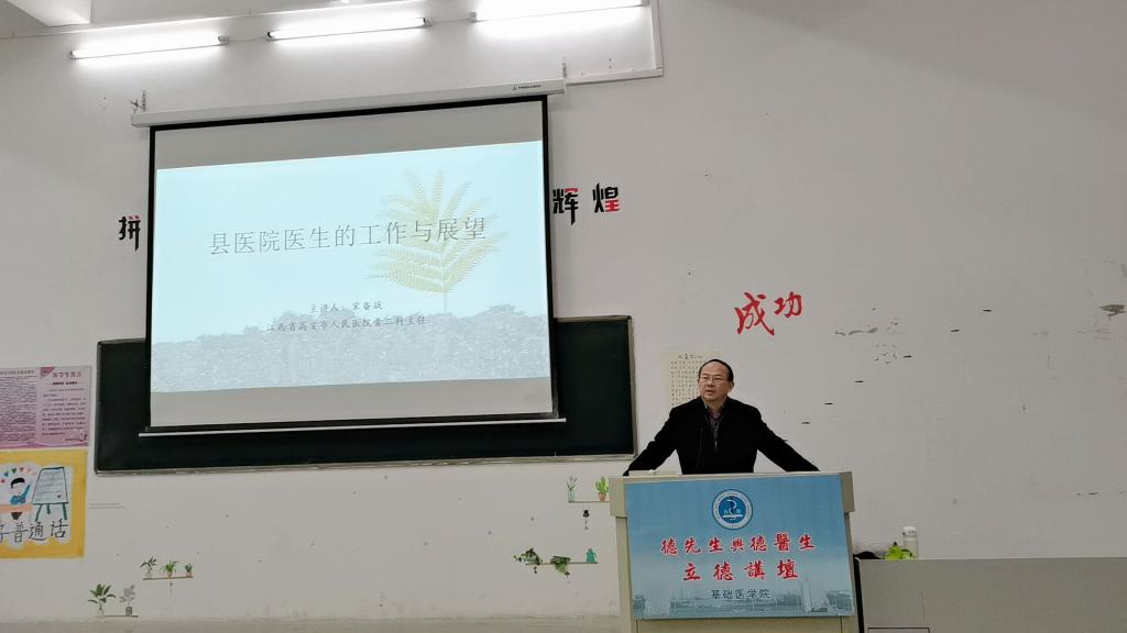 12月16日,MK体育于华文楼阶梯三教室举行了第九期“德先生与德医生”立德讲坛,邀请了高安市人民医院骨二科主任宋备战主讲,他以《县医院医生的工作与展望》为主题,让同学们了解了县级医院医疗环境和职业发展。本次讲坛由MK体育经理车向新主持,200余名员工聆听了讲座。