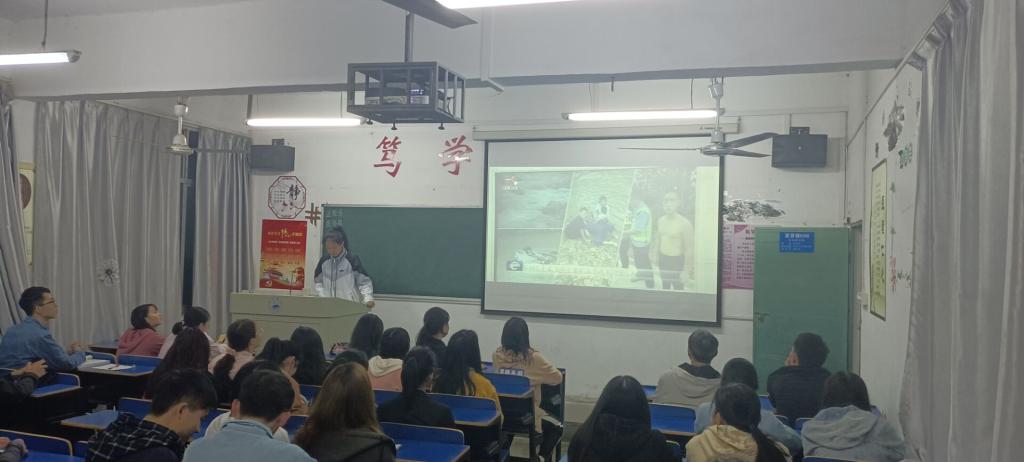 活动伊始,主持人让同学们观看了有关王亮同志先进事迹的视频,视频中王亮同志尽己所能的快速对溺水人员做心肺复苏,在看到那一刻,同学们被那与死亡赛跑的速度感动了。一次次的按压,一次次的人工呼吸表现出来的是王亮同志对自己人民子弟兵身份的最好解答。“我是一名军人,这是我应该做的,看到谁,我都会去救的。”救人时从未想过获此荣光,但社会是明白人,看得到他的英勇事迹。接下来主持人通过PPT向同学们展示了王亮同志获奖时的风采,标准的军姿和坚定的眼神是他对这次荣光的淡然。