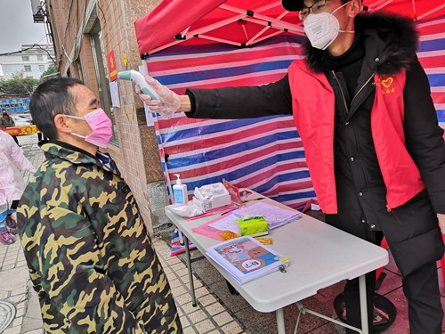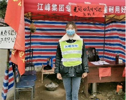 MK体育员工党支部刘璐璐、李丹、余烨丹等入党积极分子响应党中央号召,在保证自身安全前提下,主动投身到疫情防控行动之中,在社区(村组)统一安排下,积极参与值班点站岗、进出人员登记、体温检测、疫情防控知识宣传、信息调查、示范正确佩戴口罩方法等活动,用自己的实际行动体现出一名入党积极分子的先进性和责任担当,让党旗在疫情防控第一线高高飘扬。