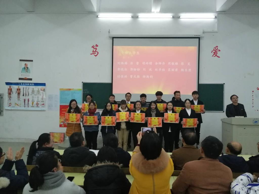 黄涛老师宣读了本学期获得校院两级各项活动奖励和表彰的先进集体和个人,并由领导老师进行颁奖。获奖的同学依次上台领奖,并进行了合影留念,台下的掌声不断。