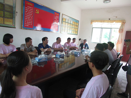 在交谈中,车经理首先对镇委、镇政府领导热情的接待和为“三下乡”活动提供的帮助和支持表示衷心的感谢,他说“暑期三下乡”的艰苦奋斗的精神值得我们老员工学习,而且作为医员工,也要多接触农村基层,这样有利于今后的适应和发展。同时他鼓励同学们要把专业知识运用到实践中去,要善于从社会中学,并能有所收获。接下来余书记发表讲话,他指出,在此次社会实践中,我们应当结合当地情况和需要调整活动方案,在工作和生活中要相互帮助相互团结,到社会最需要的地方去施展自己的才干,尽己所能把此次“三下乡”工作做好。