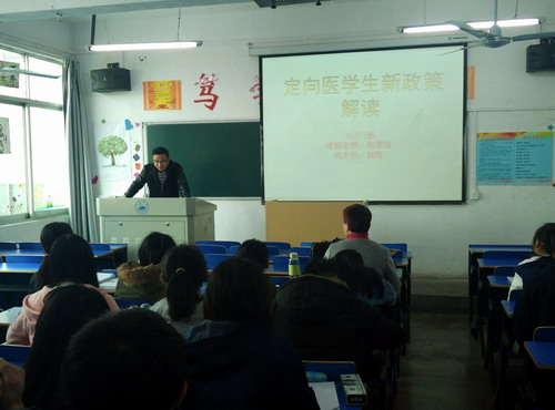 会上,何科长首先向全体同学解读了医学定向新政策,还为同学们解答了关于以后职业晋升道路上的疑问,包括规范化培训方案及待遇、职称晋升等方面的问题,她强调了目前学习及良好医德的培养的重要性。班主任赵浩老师提醒同学们不要落下学习,规划好学习计划。