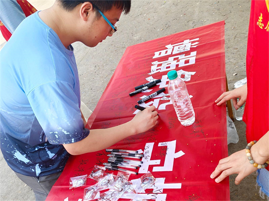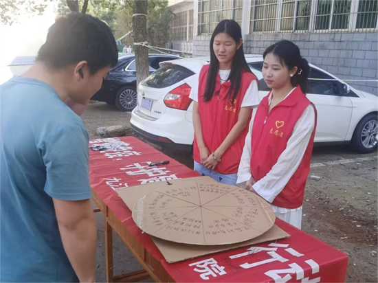 活动当日,医友保健营的成员们在三食堂广场对职业病防治与世界免疫周进行拓展宣传,利用分发宣传单和有奖竞答两种形式来科普职业病的基本知识。有奖竞答环节中,同学们通过转盘问答的方式,深入了解了什么是职业病、常见的职业病种类、如何识别职业病危害等因素以及预防职业病的基本措施。同学们踊跃参加答题,并在横幅上签字留言,提高了自身的互动感和参与感,积极加入“守护健康,我们在行动”的倡议行动中来。