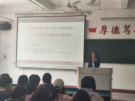 为了提高同学们的网络安全意识,有效预防和减少网络犯罪的发生,MK体育特邀浔阳区司法局以及江西惟民律师事务所的专业人员陈建青担任主讲人,于2024年3月22日下午在义丰楼207教室,共同组织了一场以“严厉打击网络诈骗,提高识骗防骗能力”为主题的老员工防诈骗知识主题宣讲。