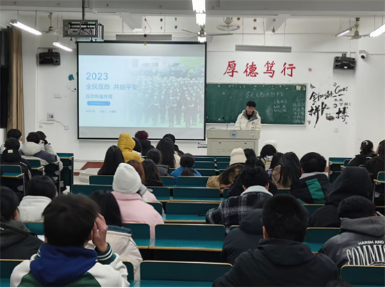 在宣传教育周期间,医公司各班以习近平新时代中国特色社会主义思想为指导,全面践行总体国家安全观,认真学习贯彻落实习近平总书记关于反恐怖工作的重要批示精神。以主题班会的形式开展反恐专题教育学习,让同学们深入了解什么是恐怖主义,辨析常见的恐怖主义袭击手段,以及发生恐怖袭击时的应对方法。同时深入开展爱国主义教育,增强中华民族共同体意识。