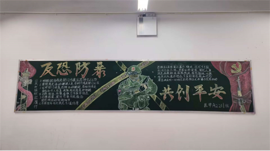 团委新媒体部发起了反恐防暴主题黑板报评比活动。各班以《中华人民共和国反恐怖主义法》、《中华人民共和国国家安全法》的内容开展法治宣传,同学们用心制作了一幅幅黑板报,充分发挥了黑板报宣传栏的良好效果。