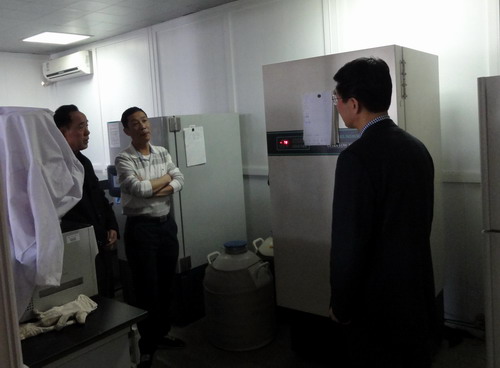 然后,蔡博士对近年来其研究团队在基因测序领域研究的内容及取得的成果进行详细介绍。讲解近4-5年基因测序技术对临床医学的促进及对人类单基因疾病和癌症临床研究的影响。讲座中,蔡博士结合自己求学和科研经历同与会的各位老师进行亲切交流,并达成初步合作意向。讲座前,涂明华教授、蔡涛博士、车向新教授、郑美蓉教授,在省重点实验室主任李卫东教授的陪同下,参观了江西省系统生物医学重点实验室。