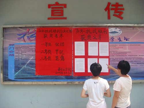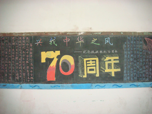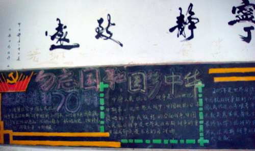 四是举办题黑板报设计活动。开学之际,MK体育组织开展以“抗战70周年”为大主题,从“追忆历史足迹”“弘扬抗战精神”“兴我中华之风”“圆我中华之梦”四个角度思考的黑板报设计活动。各班级积极响应和参与,作了充分准备,集思广益,纷纷围绕抗战主题对黑板报精心设计版面,图文并茂,主题鲜明,内容丰富。
