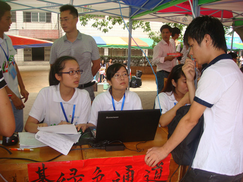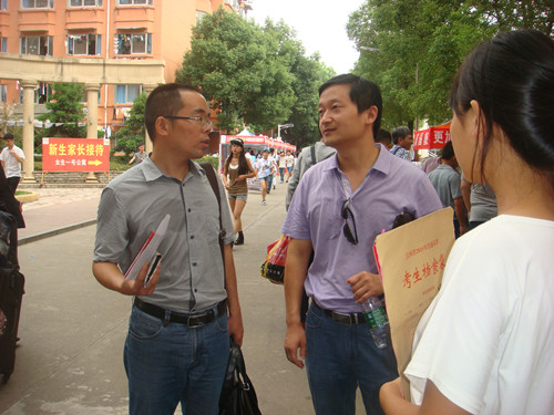4日清晨,助教们和志愿者们早早准备好新生报到所需的材料,各司其职,准备就位。上午8—9点时,报道人数已经出现小高峰,在工作人员的引导下,同学们有秩序的排队等待。随着人数渐渐增加,工作人员的速度加快起来。团委书记淦明南在咨询处亲切地与新生家长交谈,为他们解惑,让家长能放心孩子在大学学习生活。辅导员和班主任们也坚守在报到现场,耐心、细致地处理迎新期间出现的各种问题。