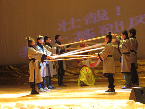 接下来,魅力四射,引爆全场的爵士舞表演《back the hours》则跳出来了青春的舞步,跳出了生命的旋律,跳出了属于他们的靓丽风姿;话剧《皇帝与刺客》以夸张的表演,幽默的语言赢得了观众们热烈的掌声;舞蹈《乌兹别克舞蹈》让观众领略到不一样梦幻而又灵动的异域风情;相声《谁当老大》让我们从一场地位之争中引发了我们的思考——各行各业都有自己的龙头老大,当老大自然要有不一样的责任;T台秀《玫瑰人生》中,模特们以最为饱满的热情朝我们昂扬走来,走出了青春的风采,走出了老员工的飒爽英姿;舞蹈《栀子花开》则将我们带入了一个花瓣纷飞的世界,栀子花开,青春不败,使观众感受到了青春的恬静与活力。最后,朗诵《青春的梦想》诵出了九院学子奋发向上的精神,诵出了老员工青春活力的面貌。