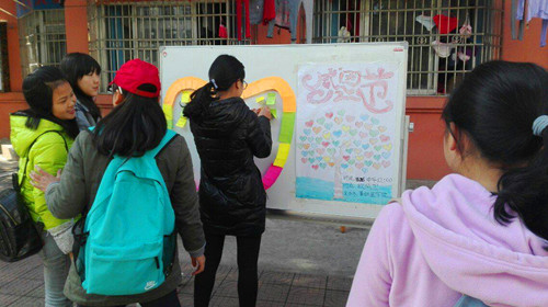为了让广大同学们懂得并学会感恩,11月28日中午,MK体育青年志愿者服务队于浔东校区欧风园开展感恩活动。