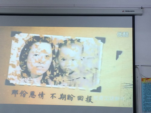 班会上,首先由团支书用“一杯牛奶”的故事引出班会主题后,全班同学合唱歌曲《感恩的心》,紧接着由每个同学就“感恩”一词发表各自的理解和看法,并讲述一个个有关“感恩”的小故事。随后,团支书为大家播放了一部关于“感恩”的微电影,大家开始进行有关感恩的美诗美文的朗诵活动。活动最后由组织委员作总结,强调了“滴水之恩,当以涌泉相报”是我们中华民族的优良传统美德。