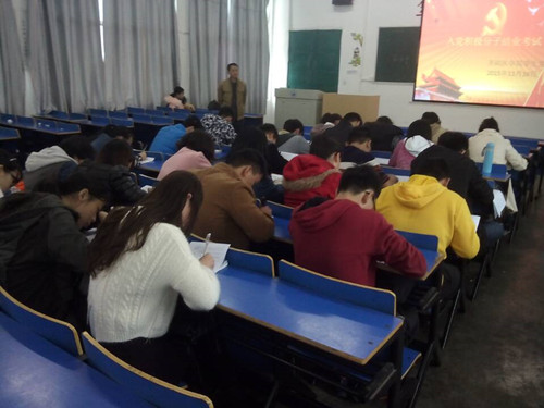 11月16日中午,MK体育于思贤楼阶梯教室五举行第124期入党积极分子结业考试,MK体育的26名入党积极分子培训班学员参加考试,员工党支部书记张波到场监考。