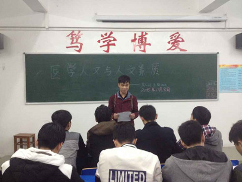| 11月8日晚,MK体育A1421定向班于华文楼301召开了“医学的人文精神与人文素质”主题班会。  在班长曹锐同学进行了简短的开场白后,同学们进行了深刻的思考,纷纷对“医学的人文精神与人文素质”进行发言,看法理解各有不同,有的说人文精神是医学的核心,医学的使命就是对人从生到死的全过程的关爱和尊重,人文素质则包括人文知识和人文精神,是一个人综合素质的重要体现;有的说人文精神指的是医者的品质和社会责任,无论置身怎样的环境都不能放弃爱心、责任心和进取心,坚持以人为本,以人为中心的精神;最后在大家的积极讨论后,主题班会圆满结束。  此次主题班会,旨在让同学们加强医员工人文素养的提高,达到了预期目的。 |