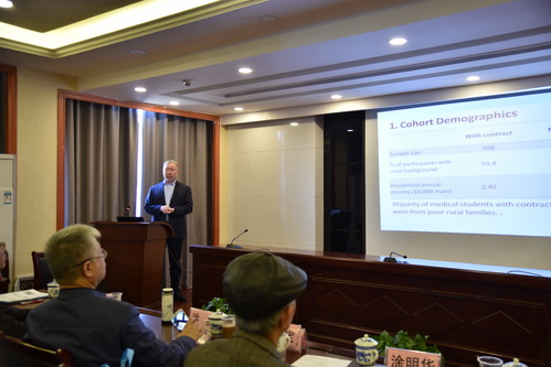 北京大学中国卫生发展研究中心刘晓云博士介绍了定向医员工培养政策评估研究的最新进展。通过对甘肃、青海、九江和赣南四个地区农村定向医员工开展队列研究,就履行合同情况和实际基层工作时间进行了广泛调研。初步结果显示定向医员工有关政策设计符合国际经验做法,执行情况良好,但也存在一些问题,比如员工对有关政策、费用、合同及毕业后服务期限等内容不熟悉,建议在员工入校时加强相关政策教育。