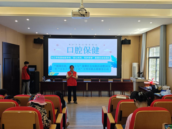 在城门乡贤馆,孩子们的求知若渴吸引了实践队的到来。实践队通过互动问答的形式,为小朋友们进行了口腔健康宣传,增强了小朋友们对口腔卫生的重视程度;通过多媒体,以提问、绕口令、诗歌朗诵等形式向小朋友们推广普通话,强调讲好普通话的重要性;利用小圆桌零距离交流的方式,辅以具体案例,向孩子们讲述了《中华人民共和国未成年人保护法》和防溺水等相关内容。在一教一学中,双方都有了新感悟、新收获,为孩子们的健康成长保驾护航。