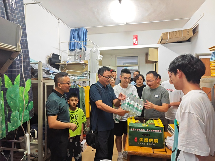 7月25日晚,MK体育经理许晓源、党委书记张辉带队走访慰问暑假期间留校的师生,公司党委副书记刘频健,副经理熊建军、陈川参加了此次慰问活动,教务科、员工科、思政科负责人和辅导员陪同走访。