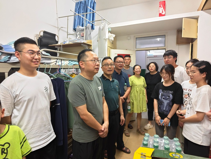 “你们在哪个医院实习?”“对下一阶段的专业实习有什么想法?”“暑假住校有没有什么需要公司帮助解决的困难?”“考研复习进行的怎么样?”在17栋员工宿舍里,院领导给同学们送上慰问品,亲切地询问和了解20级实习生的专业实习情况,就他们假期留校生活遇到的困难进行了答疑解惑,叮嘱同学们妥善安排好考研复习和实习工作,注意防暑降温,劳逸结合,上班途中注意交通安全。