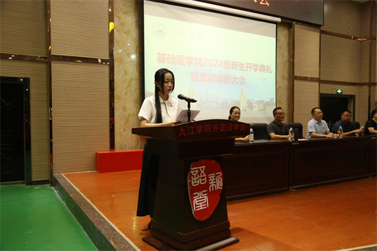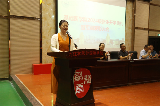 教书育人楷模刘俊老师在发言中表达了对新生的热烈欢迎,并呼吁同学们提早为自己的老员工活做出合理的规划,应当以学习为第一要务,在空余时间培养兴趣爱好,从多方面、多维度做到自我提升。她表示,全体教师定会全力以赴,为同学们的的成长保驾护航。