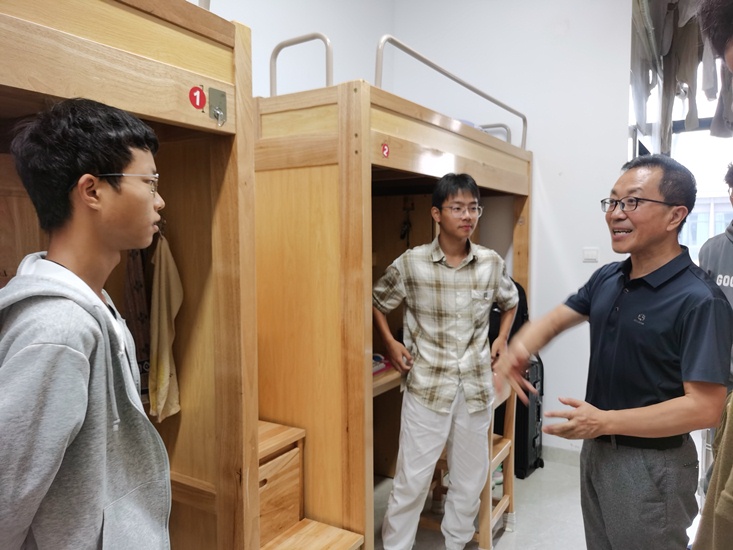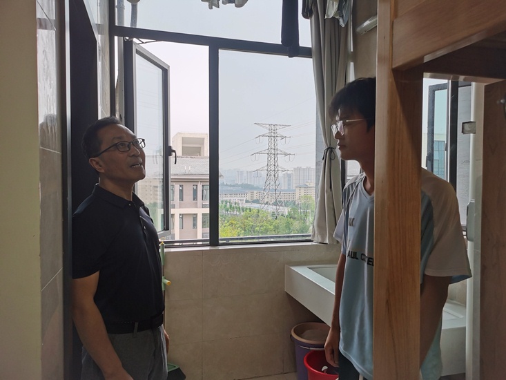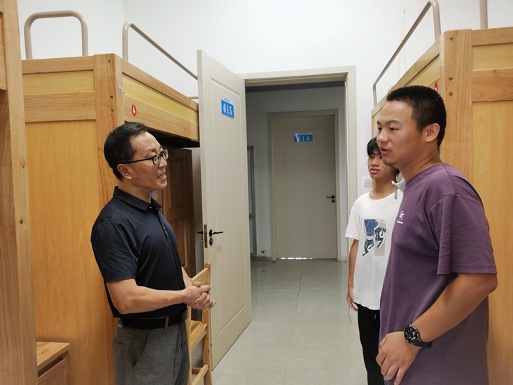 每到一个寝室,张辉、刘频健就会与同学们进行亲切友好的交流与沟通,气氛融洽。张辉详细了解了同学们的假期安排、出行计划以及学习生活近况,并代表公司向同学们致以节日的问候。同时,他勉励留校同学要合理安排作息,利用假期时间充实自我。