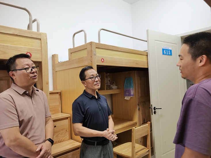 为确保国庆、中秋小长假期间校园的安全稳定,强化员工安全意识,筑牢校园安全防线,9月29日上午,公司党委书记张辉、党委副书记刘频健组织公司辅导员深入员工宿舍,开展全面的安全专项检查与慰问工作。
